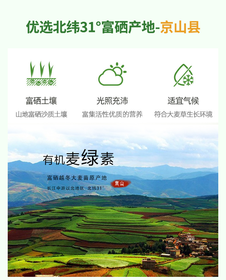 湖北偉仁百誠生物科技有限公司是一家以現代農業、生物高科技為主體的創新型企業,專業從事有機麥苗(麥綠素)的種植和提取加工。公司成立于2013年10月,落戶于“中國農谷”的核心硒源之地——湖北省京山市新市鎮四嶺村,注冊資金1000萬元。項目計劃總投資額為5000萬元。公司已經成功開發的產品主要有:大麥嫩葉提取物、小麥嫩葉提取物、有機麥綠素片系列,以及仙目牌藍莓葉黃素,其中健草堂牌有機麥綠素片榮獲了“第14屆中國武漢農業博覽會”金獎!目前,公司擁有五項國家發明專利和五個注冊商標,并獲得了“湖北省高新技術企業”資質, 2018年2月正式獲得大麥苗和大麥苗提取物兩項中國有機認證。